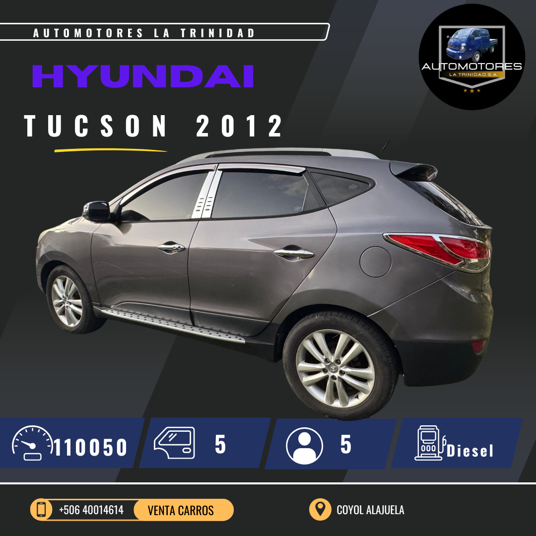 Este Hyundai Tucson 2012 diésel Costa Rica se encuentra disponible en Coyol, Alajuela.